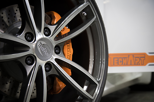 독일 TECHART 본사에서 코리아 에디션으로 특별 제작된 테크아트 컴플리트카로, 오렌지색으로 포인트를 준 테크아트 데칼과 인테리어가 눈길을 끕니다.